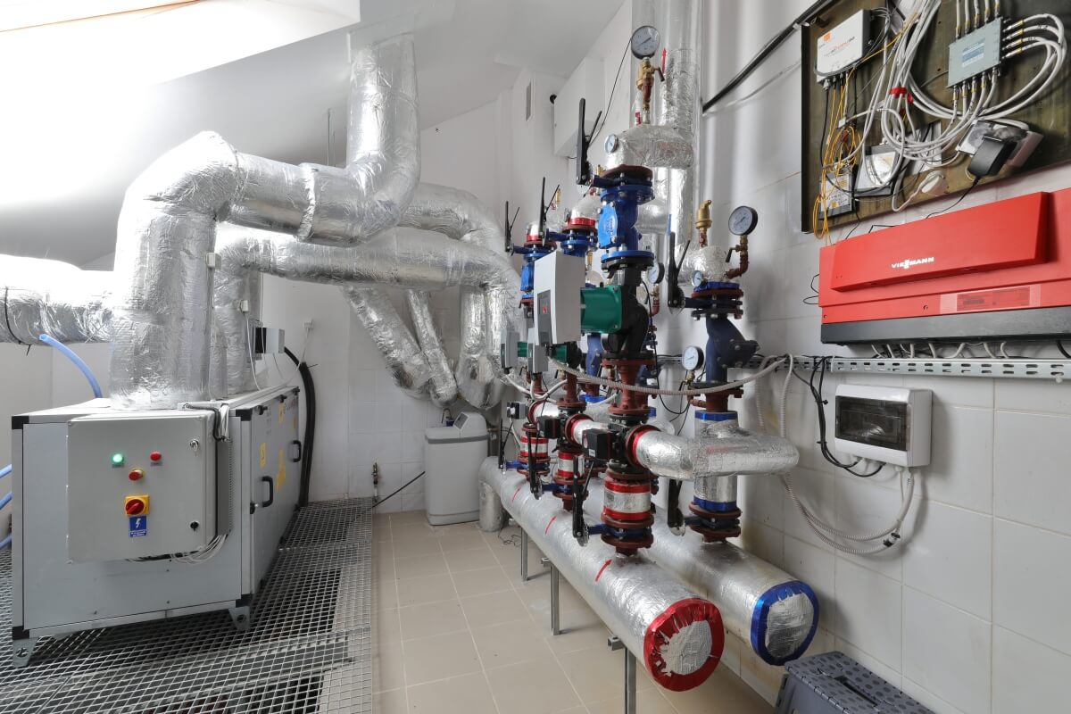 Nowoczesny węzeł cieplny z pompami ciepła, umożliwiający wysoką efektywność energetyczną w funkcji grzania i pasywnego chłodzenia,