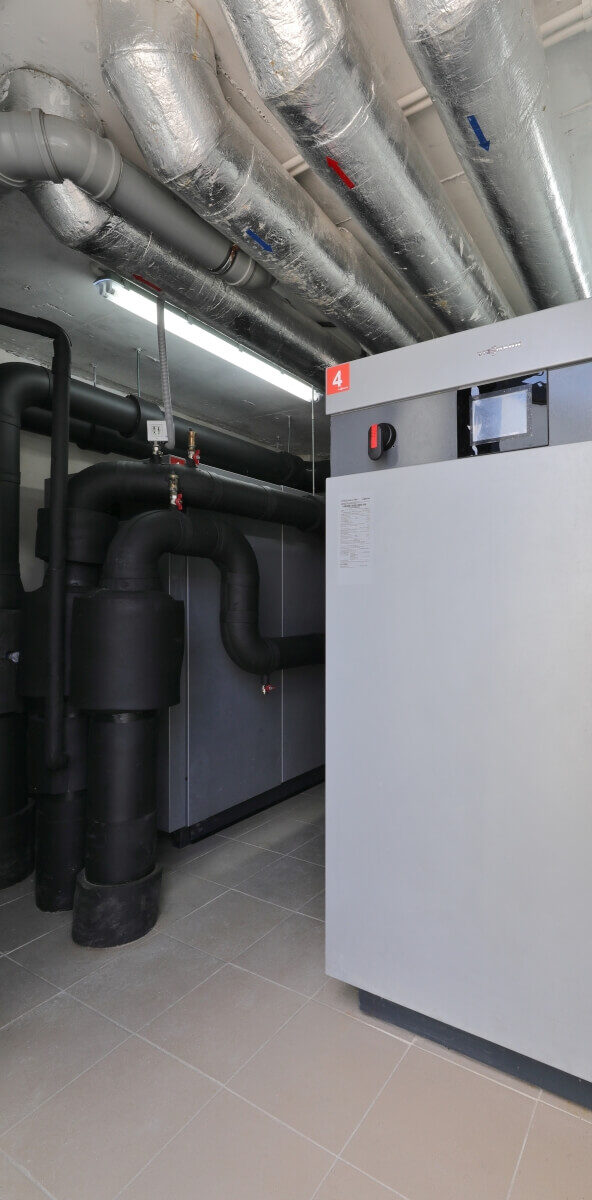 System pomp ciepła zmniejszył zapotrzebowanie na energię pierwotną i emisję CO₂, przyczyniając się do zwiększenia efektywności energetycznej całego obiektu.